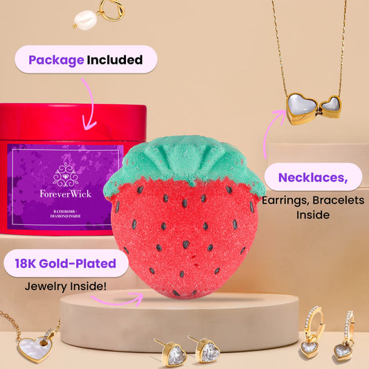 Strawberry Pop Bath Bomb w/ Surprise 18K Gold-Plated Jewelry Inside