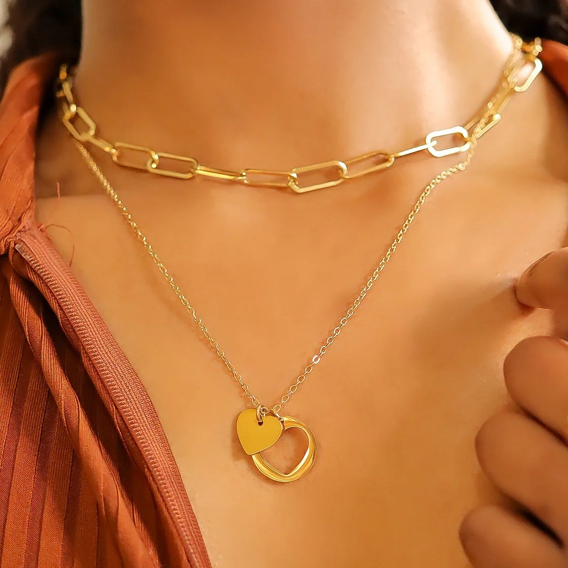 Bring a touch of elegance and timeless charm to your look with the 18K Gold PVD Stainless Steel Heart Cutout Necklace. This delicate piece features a romantic heart-shaped cutout, expertly crafted from high-quality stainless steel and finished with a radiant 18K gold PVD coating for long-lasting shine and durability.