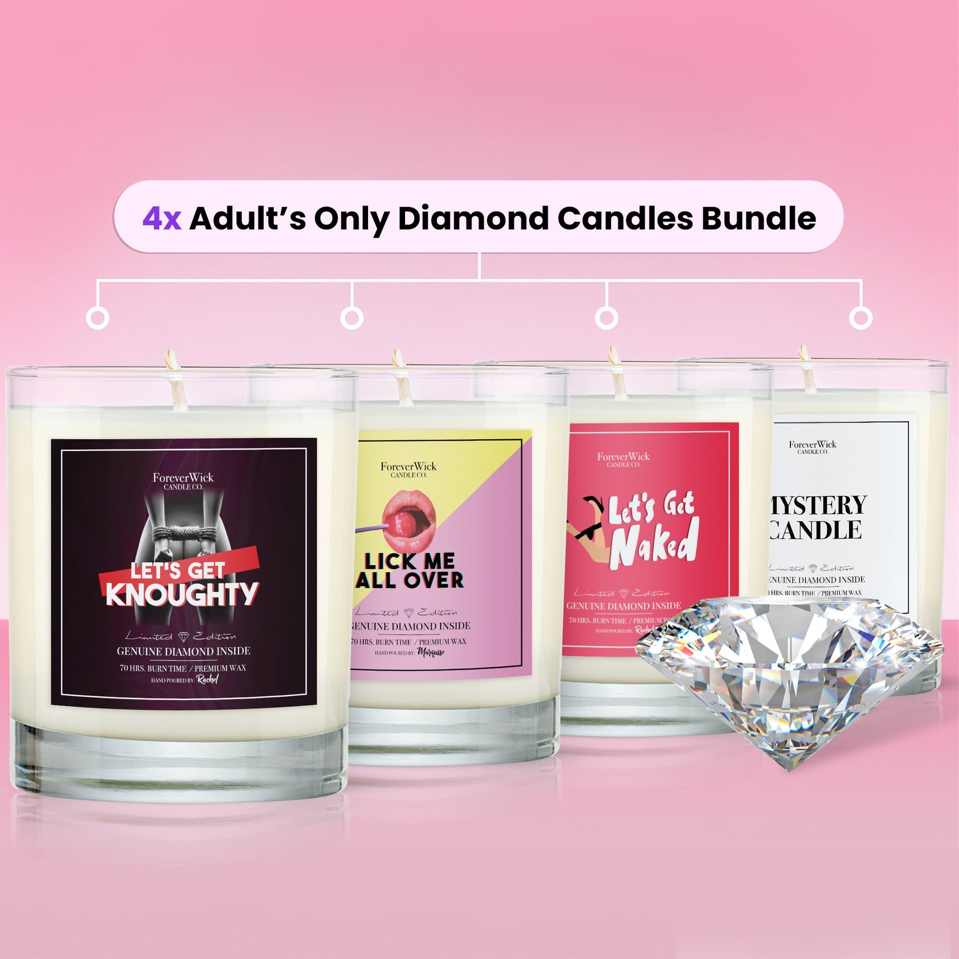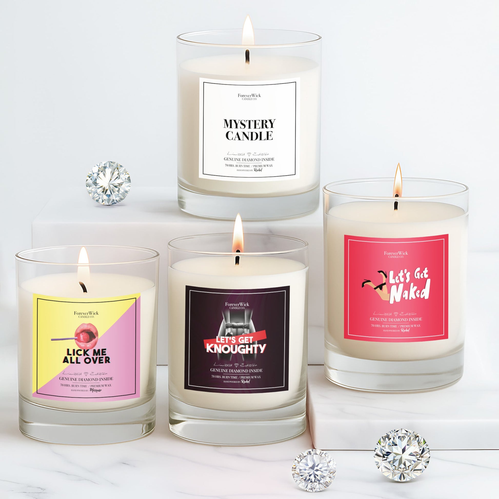 Featuring sultry favorites like “Lick Me All Over,” “Let’s Get Knoughty,” “Let’s Get Naked,” and a surprise Mystery Candle to keep things interesting. This steamy set is perfect for those who like their candles — and their nights — a little on the wild side.