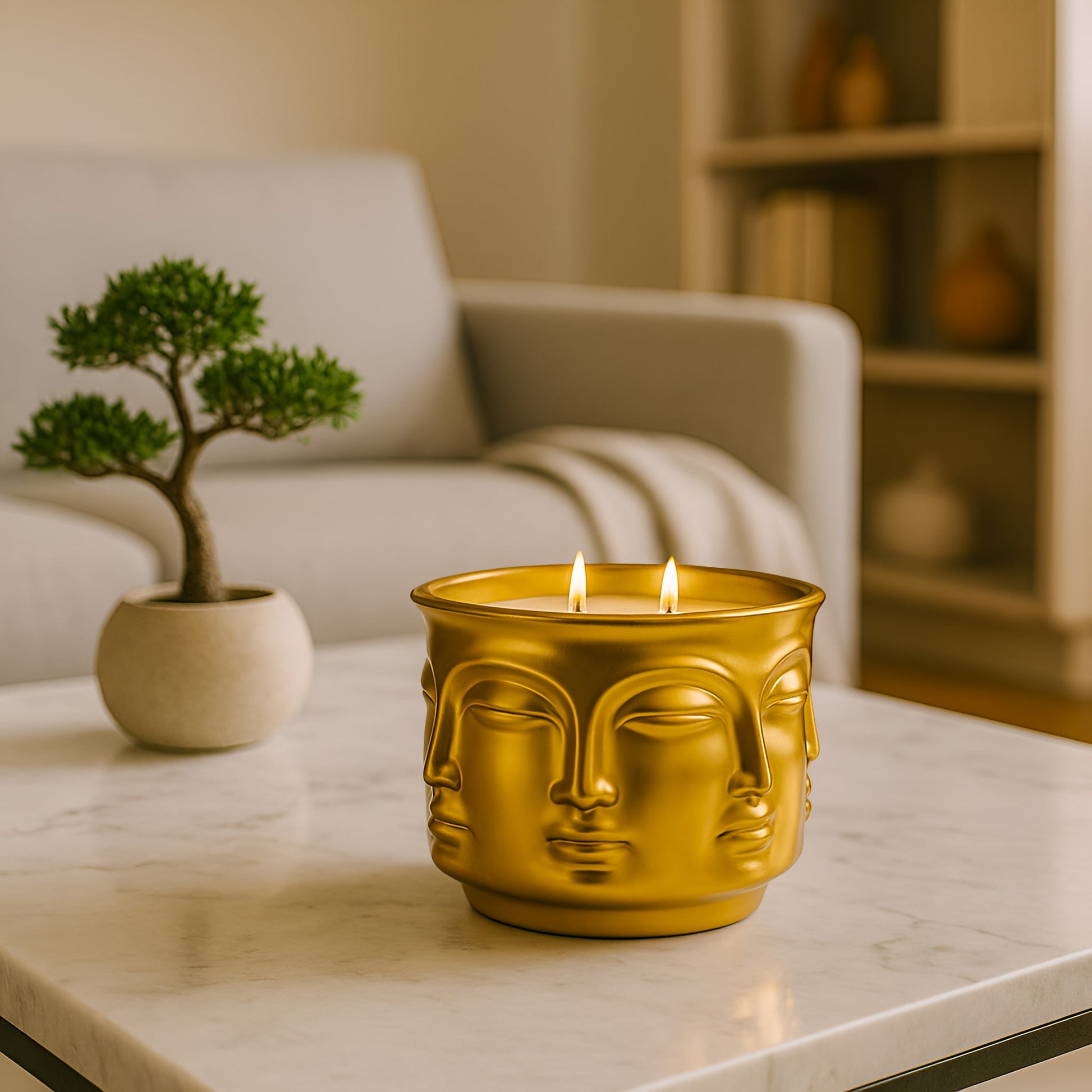 Golden Enlightenment: Buddha Head Dual Wick Candle + .10ct Diamond