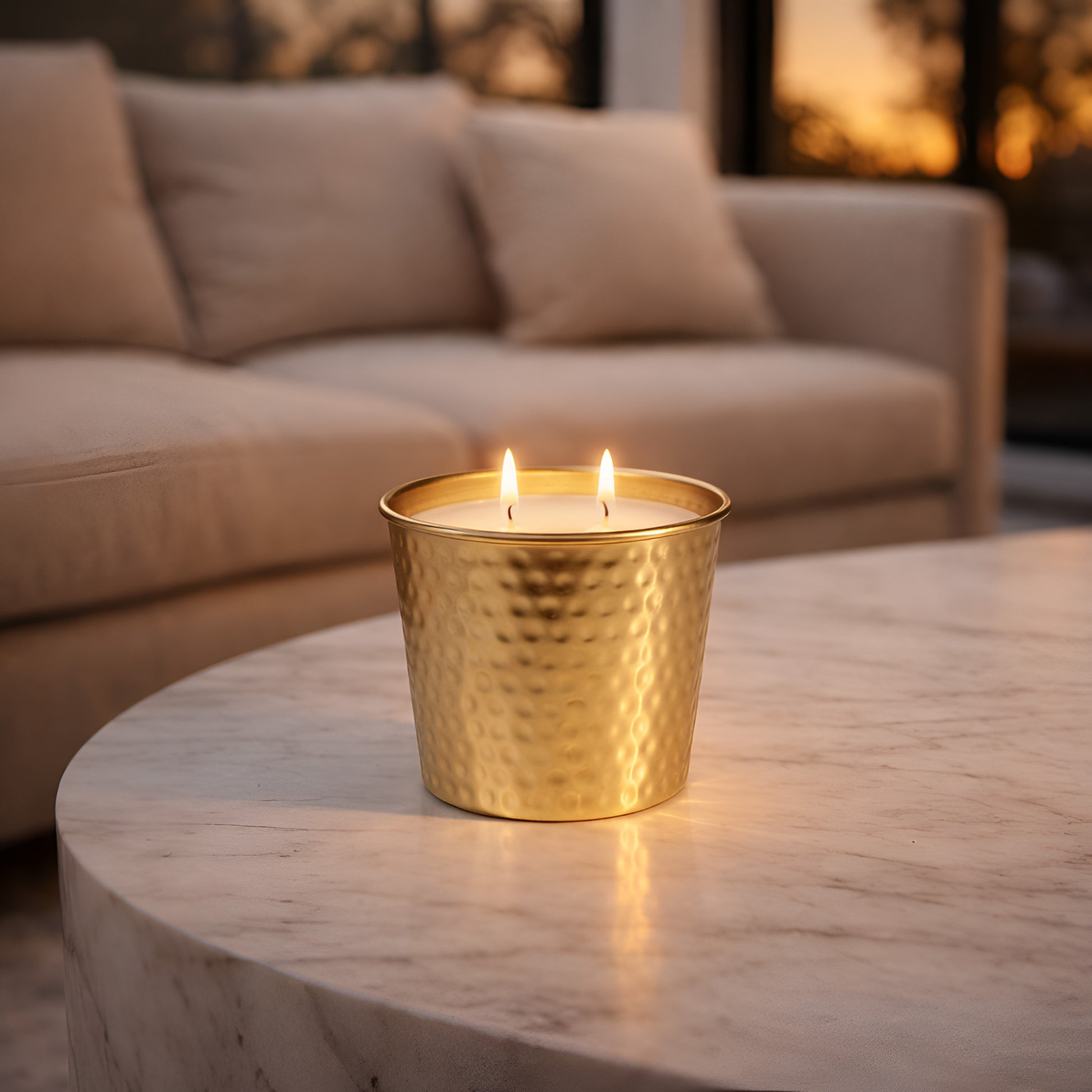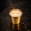 The candle is housed in a striking golden goblet-style vessel, designed to feel ceremonial, timeless, and powerful. Its sculpted metallic finish reflects the candle’s glow beautifully, transforming any room into an atmosphere of opulence and intention. This is not simply a candle—it is a centerpiece.