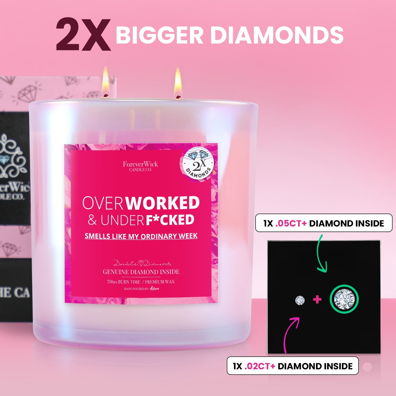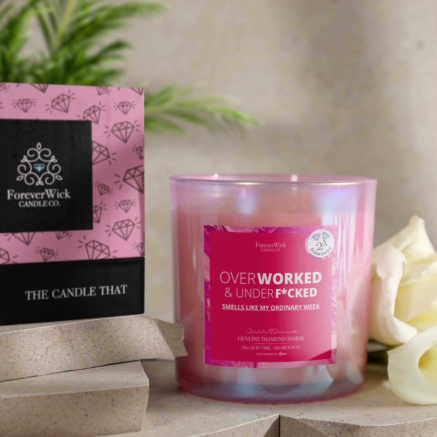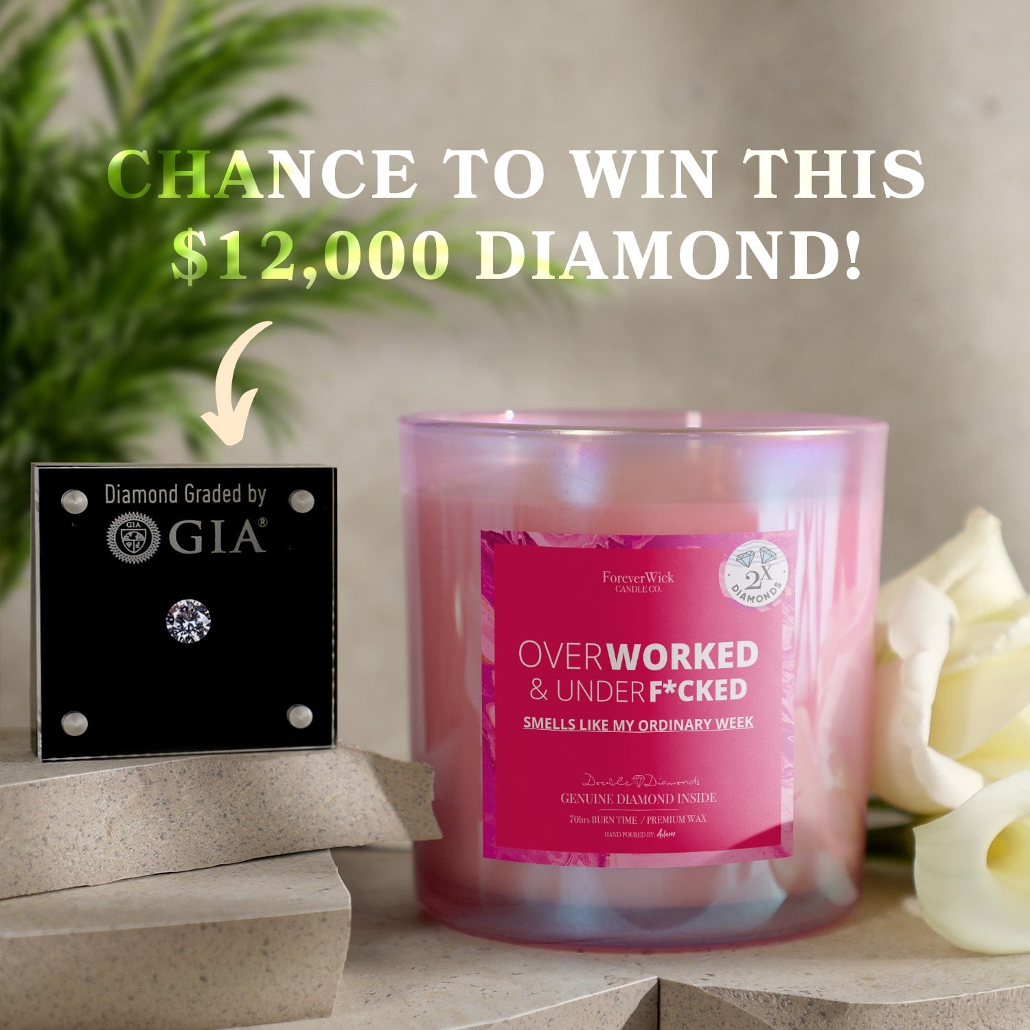 Meet our newest candle, Overworked & Underf*cked – because your week sounds like it could use a laugh (and a break)! Packed with 10oz of Jade Citrus Mint freshness, and a Genuine Diamond Inside it’s perfect for anyone who's felt like they're always on but rarely appreciated.