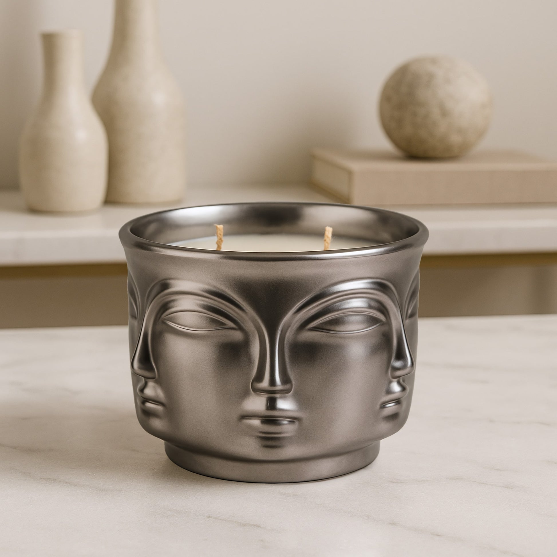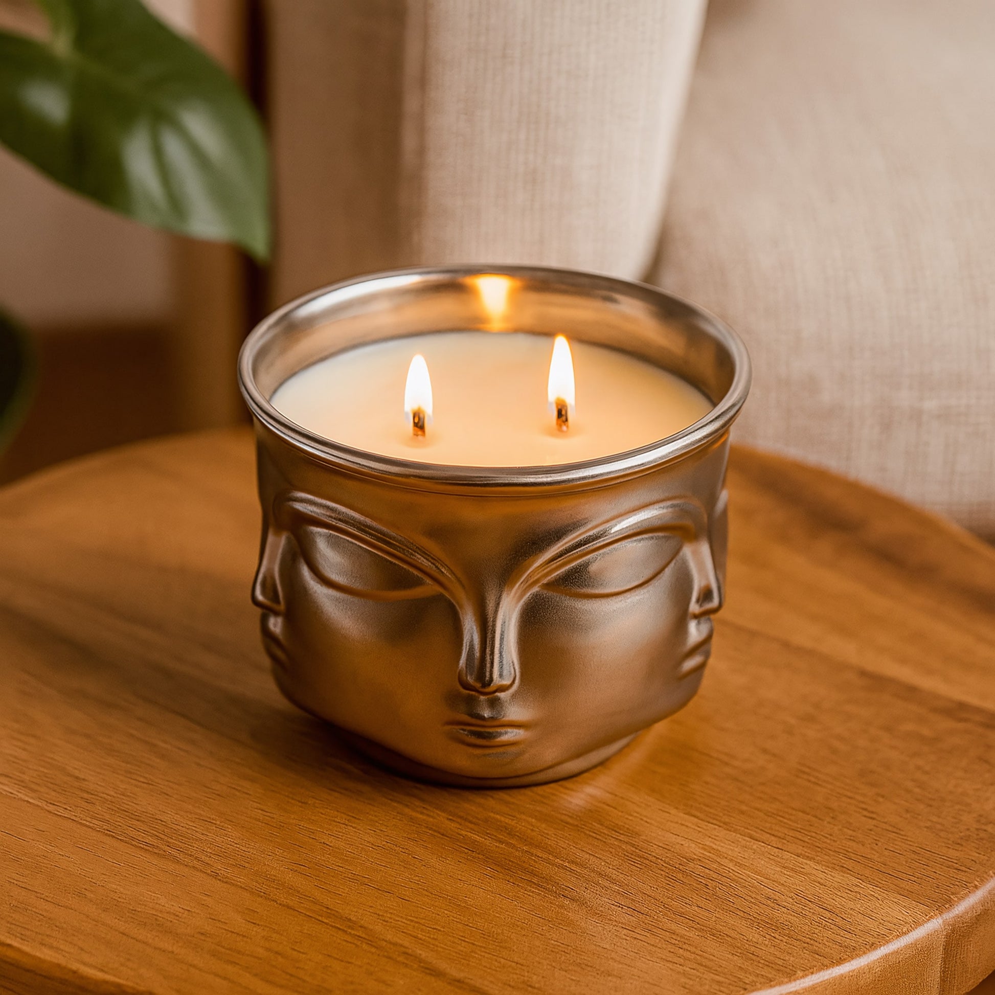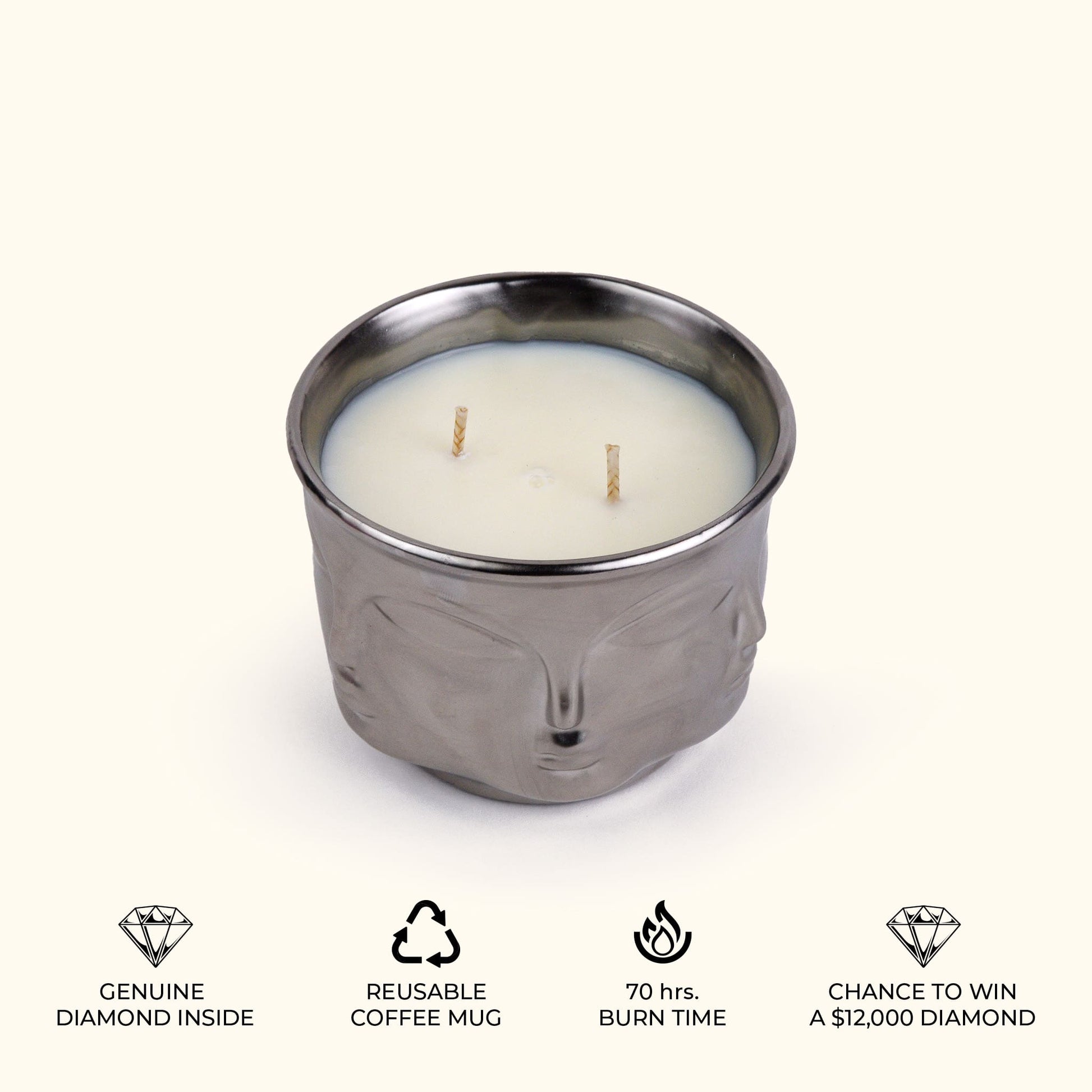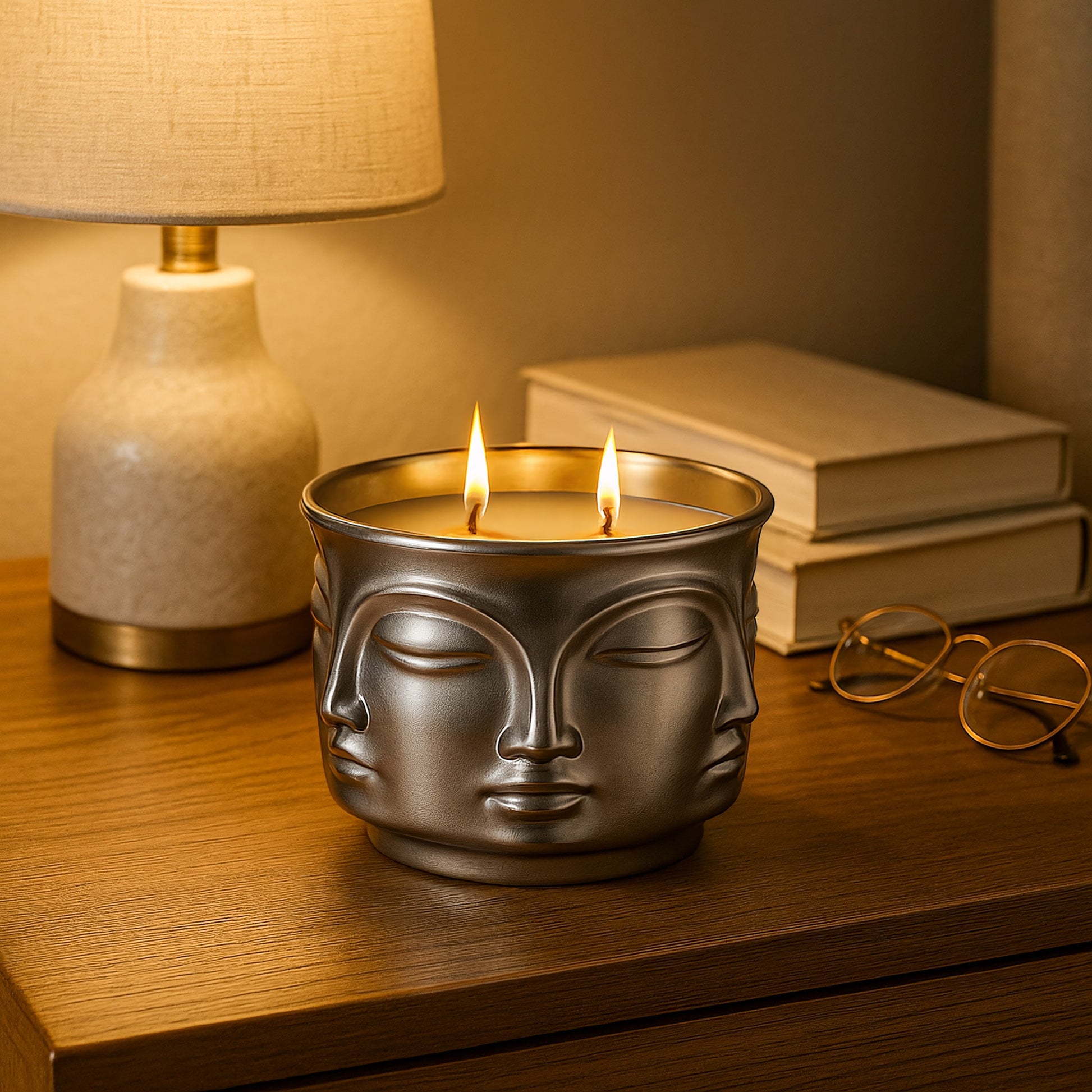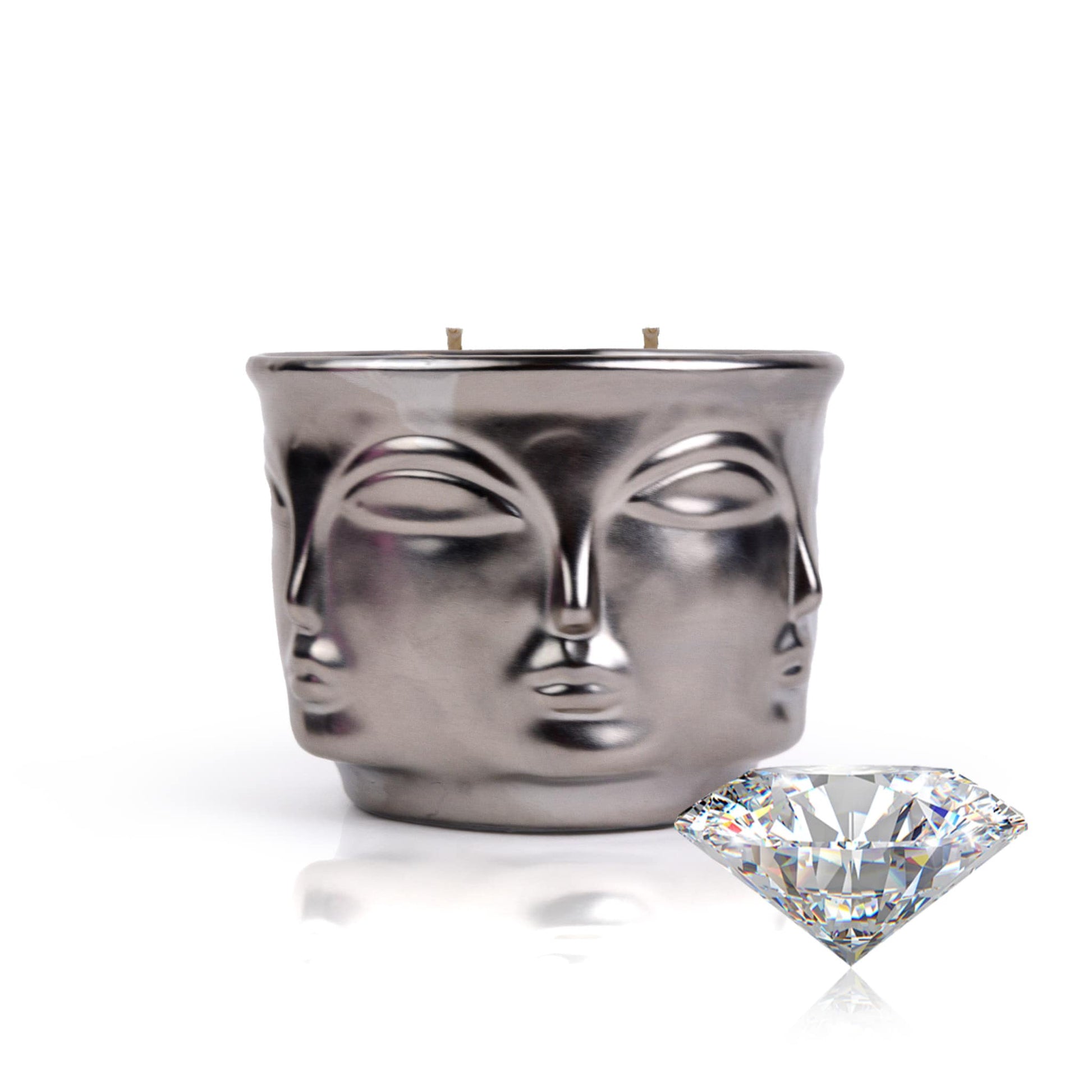 Silver Serenity: Buddha Head Dual Wick Candle + .10ct Diamond