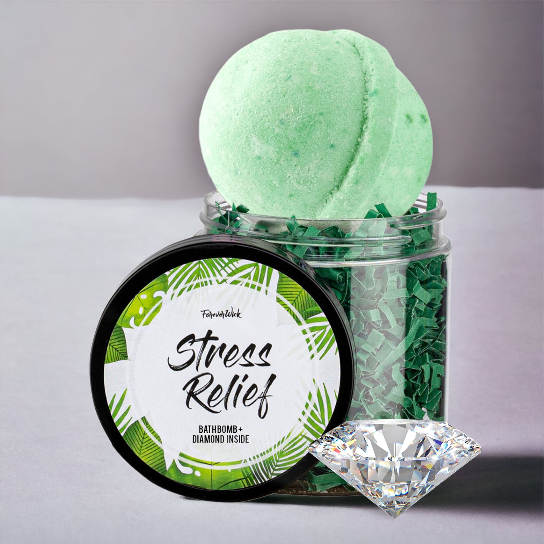 This bundle includes a Stress Relief Double Diamond Candle, perfect for filling any room with a calming and soothing aroma, and 2 Stress Relief Diamond Bath Bombs, infused with essential oils to create a luxurious and relaxing bath experience.