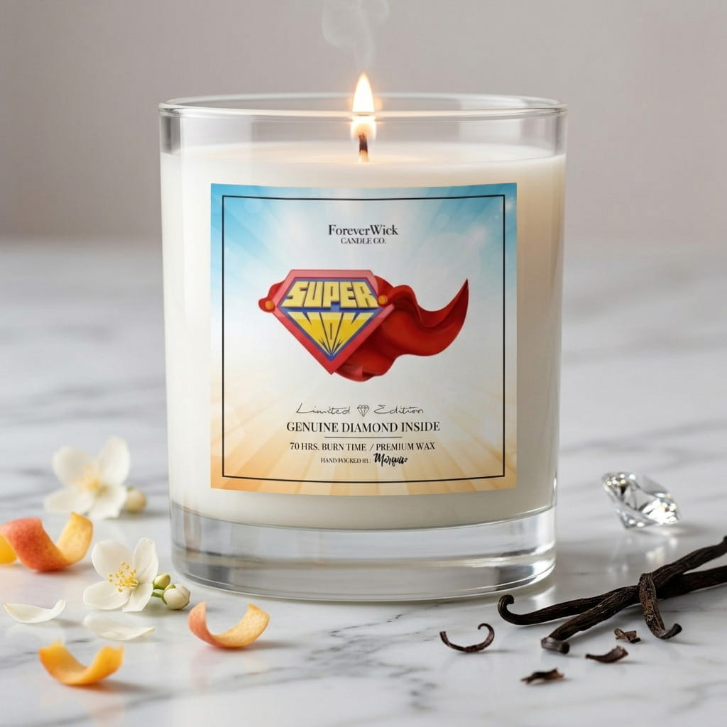 Hidden within the creamy soy wax is a real diamond, waiting to be revealed as the candle burns. A beautiful symbol of the lasting impact she has made - strong, timeless, and more valuable with every passing year.