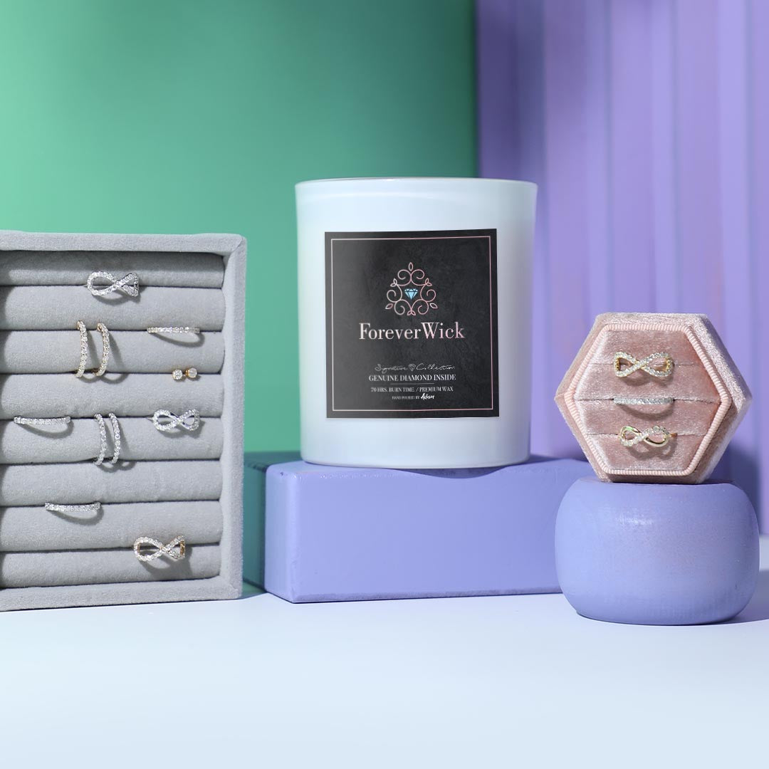 Collect the diamonds from our candles and exchange them with beautiful 14k white or gold jewelry.