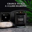 A rich, masculine candle poured in sleek black glass, with a hidden diamond waiting inside.